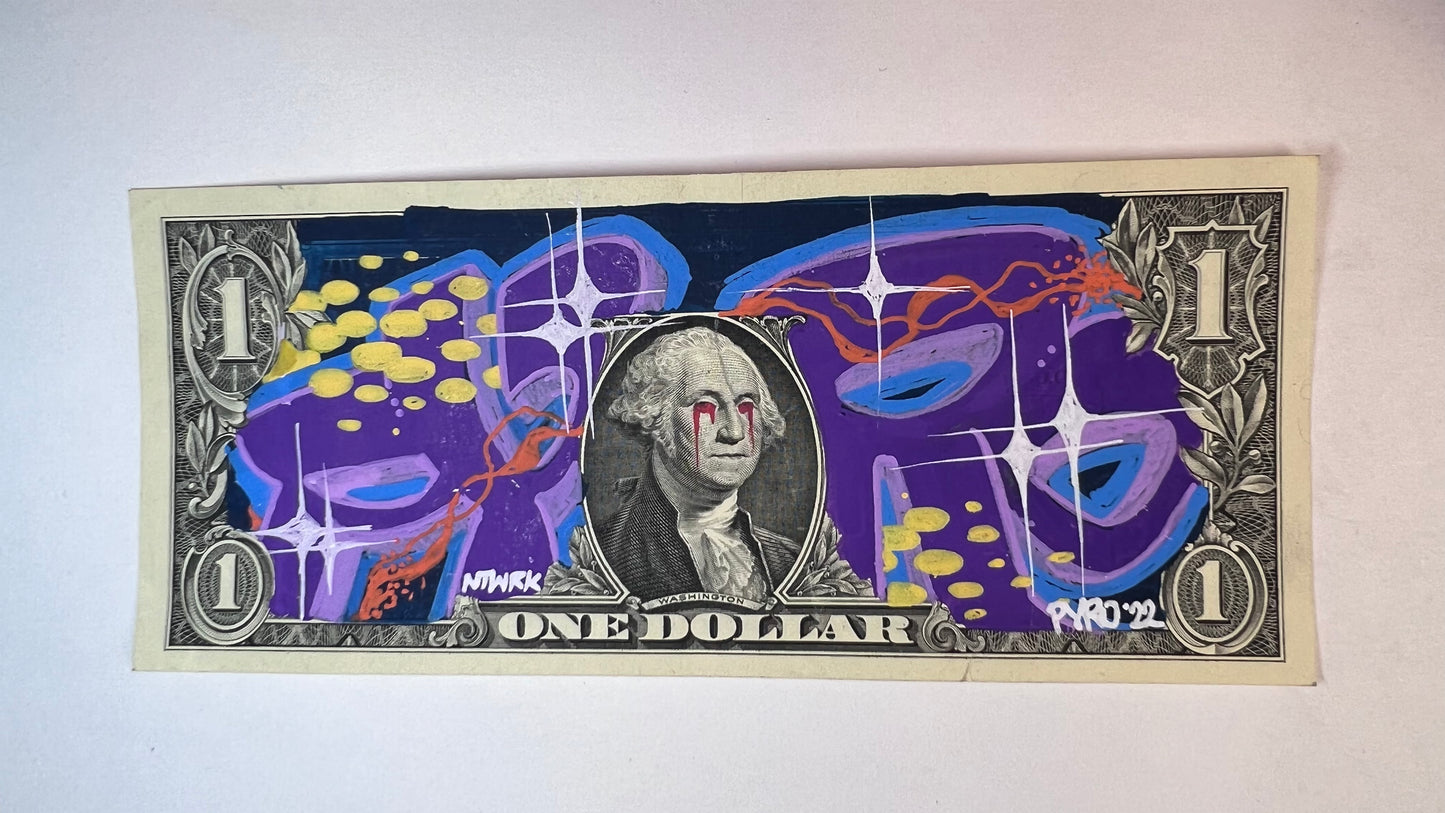 Hand painted original one of a kind legal tender dollar bill. Available only from NTWRK All Lucky Bucks are individually painted by hand, there are no two alike.