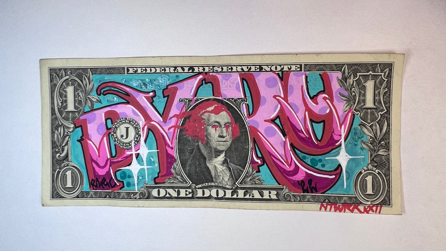 Hand painted original one of a kind legal tender dollar bill. Available only from NTWRK All Lucky Bucks are individually painted by hand, there are no two alike.