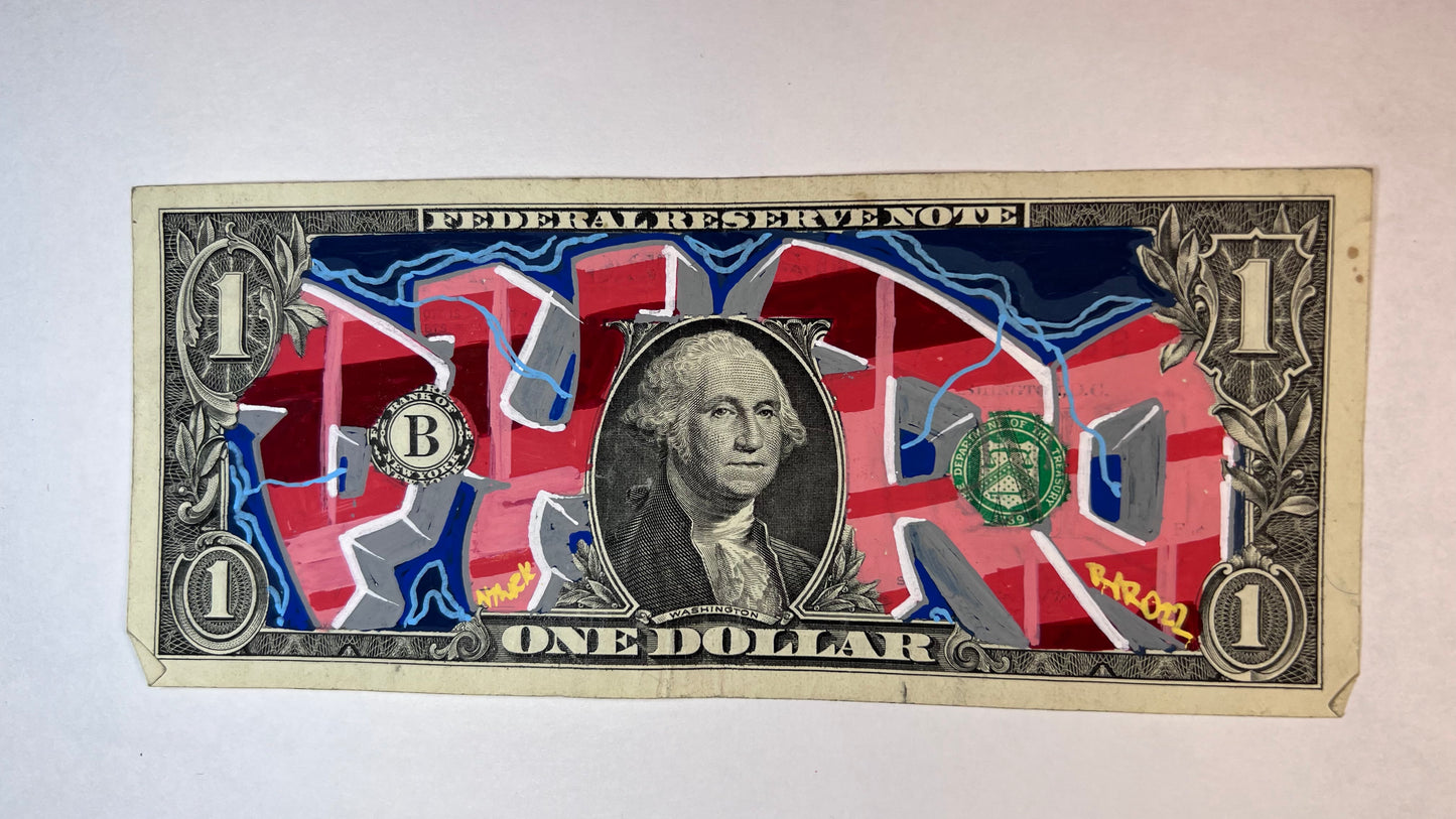 Hand painted original one of a kind legal tender dollar bill. Available only from NTWRK All Lucky Bucks are individually painted by hand, there are no two alike.