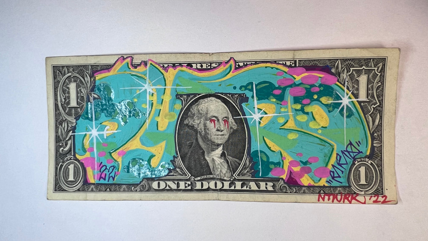 Hand painted original one of a kind legal tender dollar bill. Available only from NTWRK All Lucky Bucks are individually painted by hand, there are no two alike.