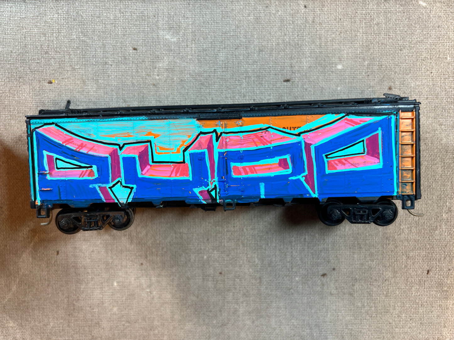 The NEW trains are (finally) here.. All are HO scale unless otherwise noted. These are rolling stock that will roll in your line or just look good on a shelf. Both sides are lightly weathered and painted (2nd side is a surprise! It could be a burner, it could be straight letters, maybe a row of throwies, or possibly a whole car…that’s the surprise!)