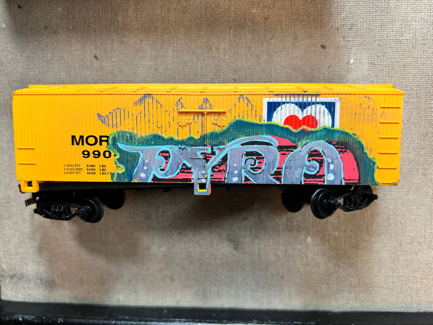 The NEW trains are (finally) here.. All are HO scale unless otherwise noted. These are rolling stock that will roll in your line or just look good on a shelf. Both sides are lightly weathered and painted (2nd side is a surprise! It could be a burner, it could be straight letters, maybe a row of throwies, or possibly a whole car…that’s the surprise!)