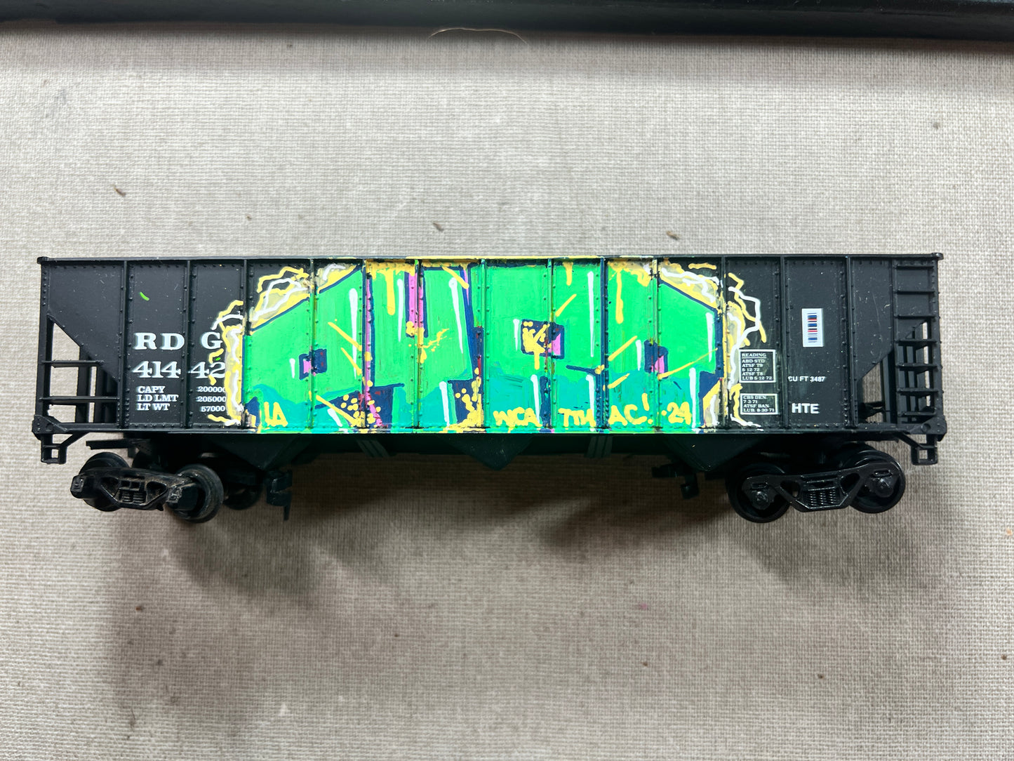The NEW trains are (finally) here.. All are HO scale unless otherwise noted. These are rolling stock that will roll in your line or just look good on a shelf. Both sides are lightly weathered and painted (2nd side is a surprise! It could be a burner, it could be straight letters, maybe a row of throwies, or possibly a whole car…that’s the surprise!)